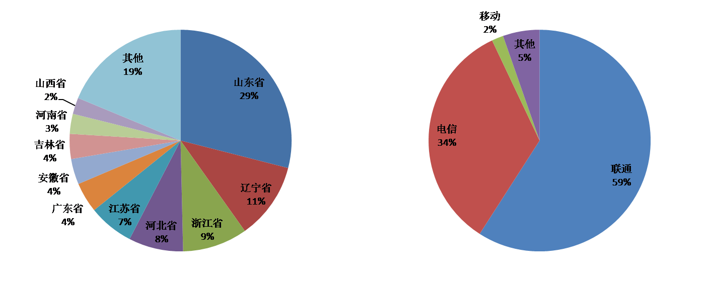 图2 攻击X.X.144.201的反射服务器按省份、运营商分布