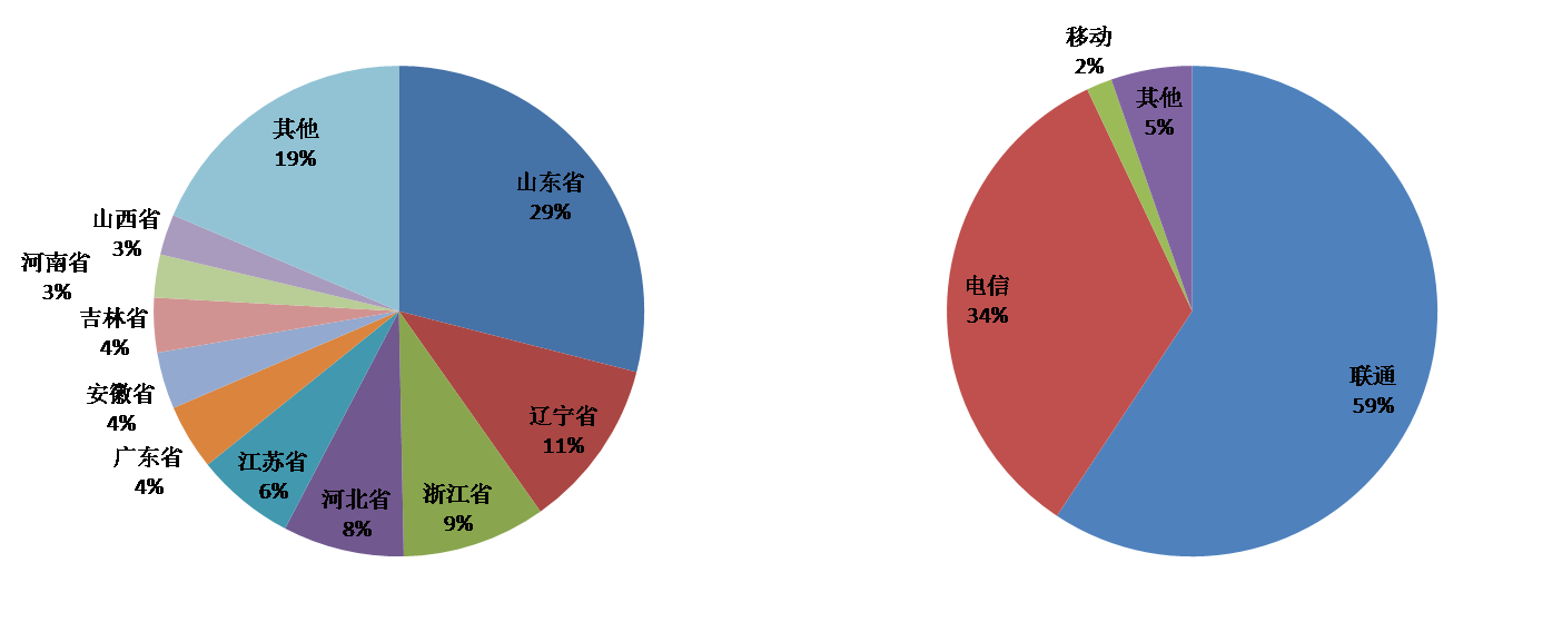 图3 攻击X.X.145.201的反射服务器按省份、运营商分布