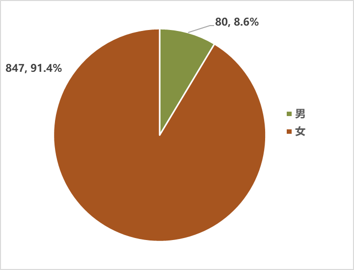 我中心监测发现,2017年12月,1058个受害者IP提交的信息共有1618条,经过初步分析,共涉及到927条有效身份信息。通过对这些有效身份信息分析发现,受害者年龄段分布情况如图12所示,覆盖了18-84岁的人群,其中20-40岁区间内占到了有效信息的50%以上,为主要的受害用户群体;受害者性别如图13所示,女性占比高达90%,说明女性更易受骗,值得高度关注。