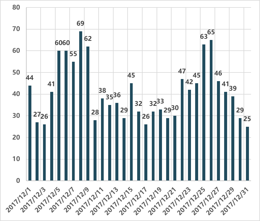 图9:2017年12月每日监测发现的此类活跃的钓鱼网站数量