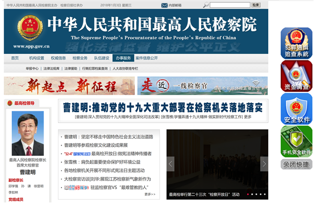 在受害者使用诈骗分子告知的“案件编号”登陆此类网站后,页面显示的是“中华人民共和国最高人民检察院”的相关内容,如图2所示,与真实的最高检网站极为相似,具有极大的欺骗性,受害者一般很难分辨。