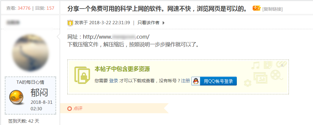 下面是某论坛用户分享的用于“翻墙”的第三方免费VPN软件,帖子的最后回帖时间是2018年11月24日。软件官网声称是为学生党,上班族定制的免费加速器。不明真相的个人用户以为是天上掉馅饼的好事,很多用户在回帖感谢,实际上这是挖矿木马设置的陷阱。软件中除了提供给用户VPN服务外还会偷偷挖矿。