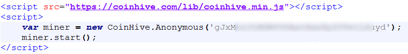 网页挖矿很常用的一种方式是利用一些类似coinhive的项目,不需要向个人电脑释放挖矿软件,只需要在网页中嵌入调用JS接口的代码(如上图)。有用户打开网页时就可以通过浏览器在浏览页面的用户电脑上执行挖矿请求,此时浏览器进程就会占用大量系统资源挖矿,电脑会出现明显卡顿。