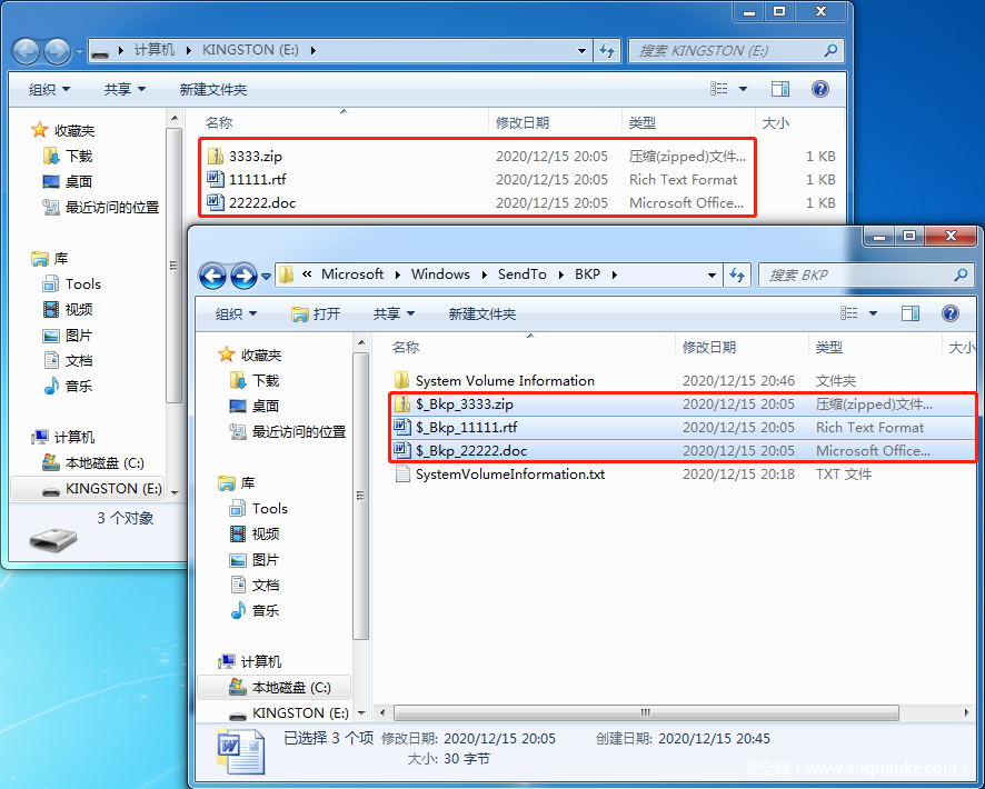 为获取到的文件添加前缀(“$_Bkp_”)然后将文件拷贝到本地磁盘的指定目录:“C:\Users\%username%\AppData\Roaming\Microsoft\Windows\SendTo\BKP”。