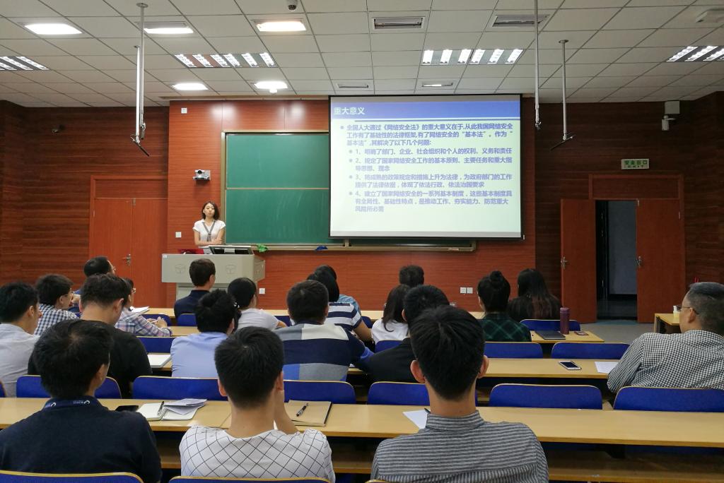 为贯彻党中央、国务院关于网络信息安全的决策部署,落实国家《网络安全法》,9月8日上午9时,学校聘请校外网络安全专家在9号楼401教室举办了《网络安全法解读》专题讲座,对2017年6月1日起实施的《中华人民共和国网络安全法》进行了深入学习,信息化建设与管理处全体同志及校内部分师生参加了此次讲座。