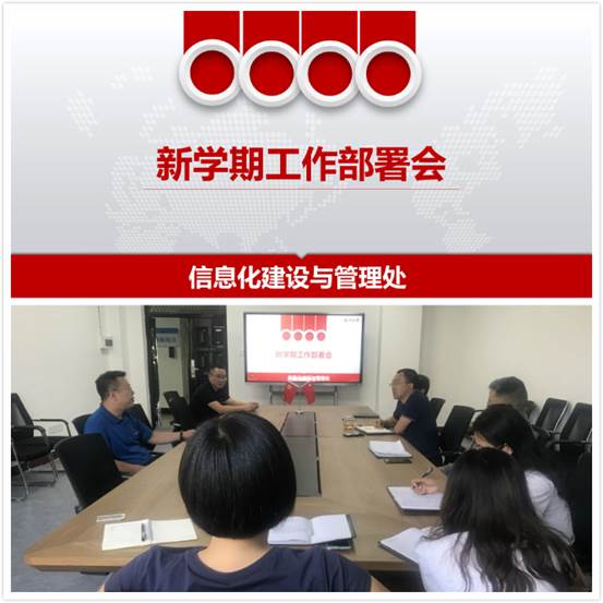 9月4日下午,信息化处在9号楼4层会议室召开了新学期工作部署会议,研判分析了当前信息化工作面临的新形势、新挑战,听取了各科室工作汇报,部署推进下半年的重点工作,全处工作人员参加了本次会议。