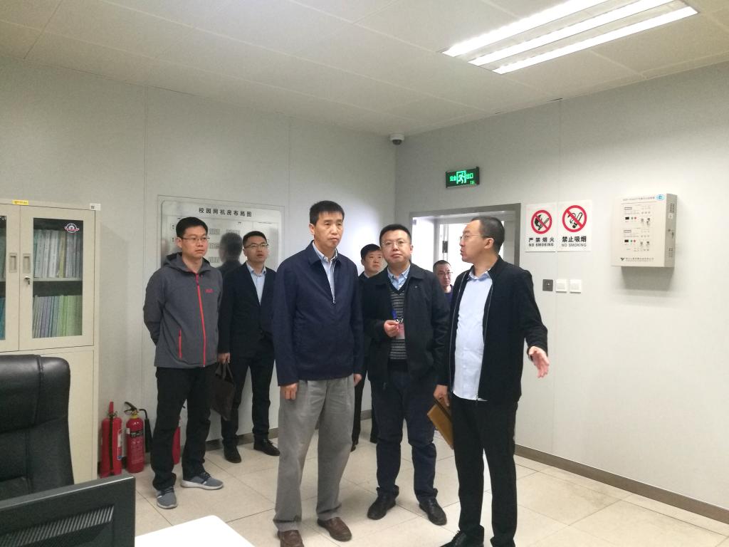熊继军校长首先到信息化处各部门进行走访,并与工作人员进行了亲切的交流,然后视察了学校网络机房、数据中心、运维中心、指挥中心,详细了解了机房运行维护、网络运行维护等情况。