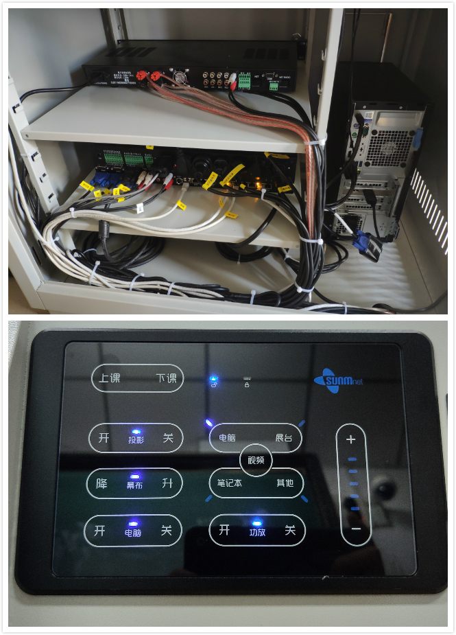学校多媒体改造主要部署了远程集控平台、智慧网络中控、手机端管控软件、开放式多媒体讲台等智能设备和软件,与教务处教学系统进行了对接,实现了根据课表有课多媒体教室所有多媒体设备上课前提前自动开启,下课后所有设备自动关闭,节省了广大教师领取多媒体钥匙和开启多媒体设备的时间,助力老师轻松教学。机电学院张老师深有感触的说:“以前每次上课前,至少提前10分钟到教休室排队领钥匙,然后开启设备还需要3分钟左右,下课关设备,还要排队还钥匙。现在方便多了,前后节省了至少20分钟”。