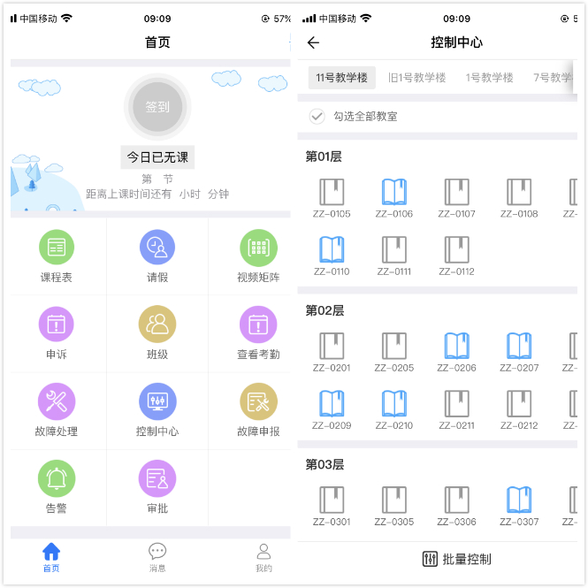 改变以往教室管理员逐间教室地进行多媒体设备管理,实现了管控电脑、功放、音响投影、交互屏等多媒体设备都可通过管理平台进行统一的管理控制,还能在手机端实现远程实时管理。管理员不用到教室巡查,就能通过平台远程完成设备控制、环境控制、信息发布等工作。还可按照课表设置设备定时开关,实现设备的无人值守。管理人员能够提前、主动发现多媒体设备故障,远程协助老师及时解决问题,大大缩短了故障处理时间,提升了多媒体教室管理水平和运维服务效率。通过“一键巡检”或定时巡检对所有教室的设备进行开关、功率的巡检,精准确定故障,线上集中管控,让管理更高效便捷,极大提升设备运维工作效率及质量,大幅降低人力成本。