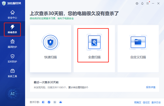 如访问外网时出现【访问提醒】,需要复制“中北大学EDR下载地址”,下载对应终端系统的安装包,当前提供【Windows操作系统】【Mac操作系统】【Linux操作系统】三种类型的终端杀毒软件,用户可根据自身终端系统进行选择安装,并启用病毒查杀,进行一次全盘扫描。(注:用户也可安装其它的安全防护软件,如360安全卫士等,以清除本机安全隐患为目标)