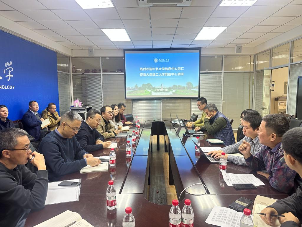 14日,调研人员一行前往大连理工大学调研。座谈会上,大连理工大学于广辉副主任等对我中心人员的到访表示热烈欢迎,双方就网络与信息化中心概况、信息化建设管理体制机制、信息化建设规划和组织、网络基础设施、智慧校园建设、超算中心、智慧教学、移动应用、数据中心、网络安全、一卡通建设等方面进行了深入交流和探讨。