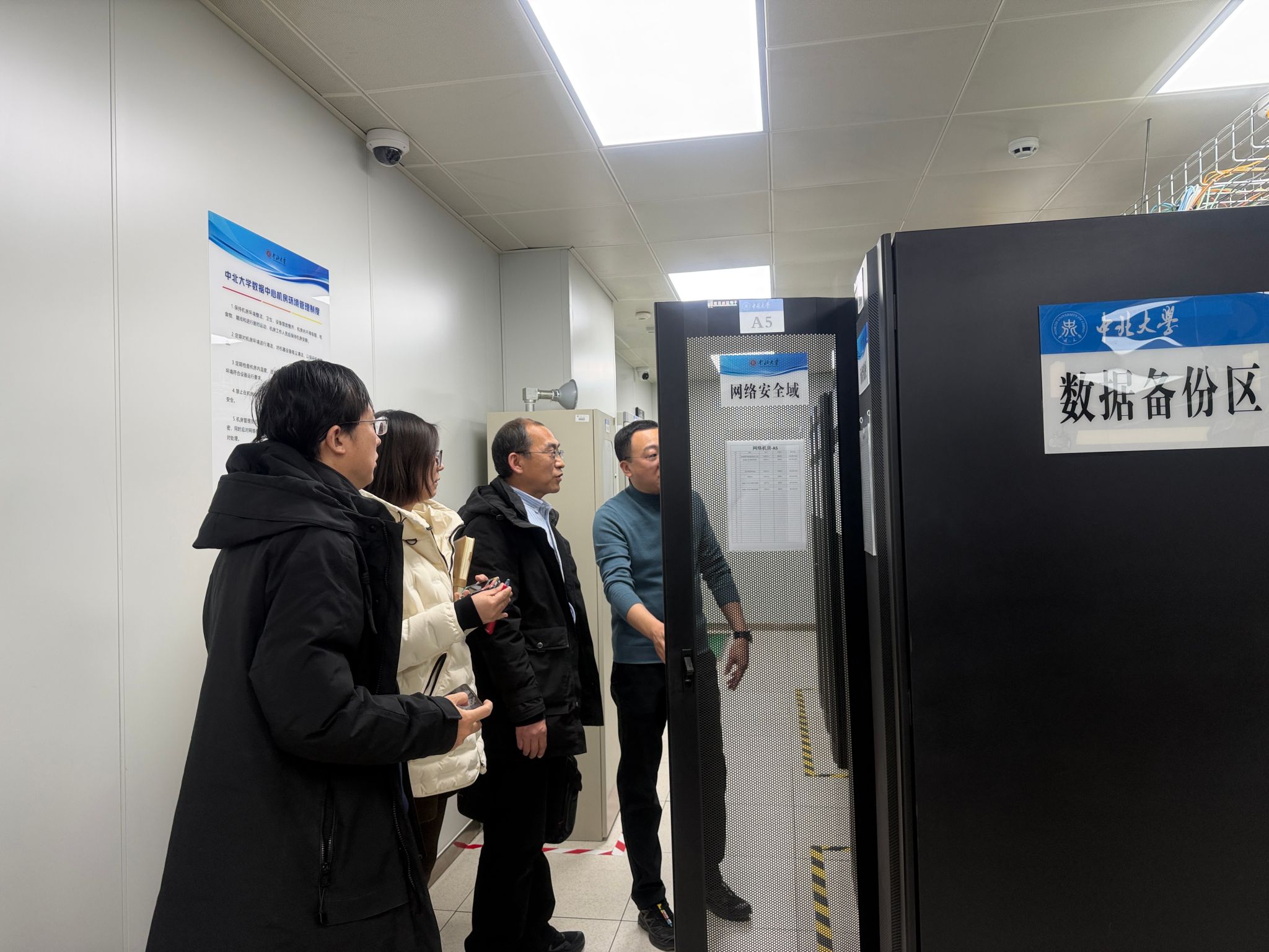 随后,双方围绕高校信息化发展中的共性问题展开深入交流,具体包括“十五五”信息化发展规划的编制思路与重点方向、校园无线网络的规划建设与运维优化、银校合作项目的推进模式与运营机制、信息化系统日常运维体系与应急处置流程、网络安全与数据安全演练的组织实施等内容。座谈气氛热烈,双方积极分享经验、交换意见。座谈结束后,杨静主任一行实地参观了我校网络中心机房、数据中心机房、指挥中心等。