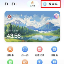 (1)打开 “完美校园”小程序首页,点击“校园码 ”