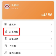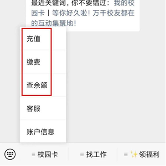 (1) 点击“ 校园卡余额 ”