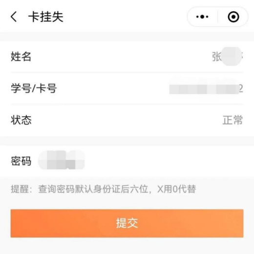 (3) 输入信息“提交”即可挂失