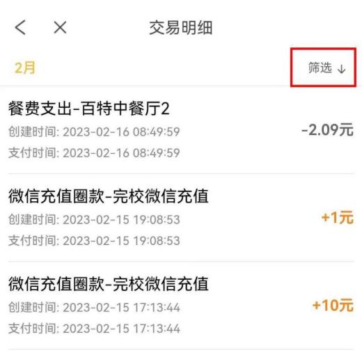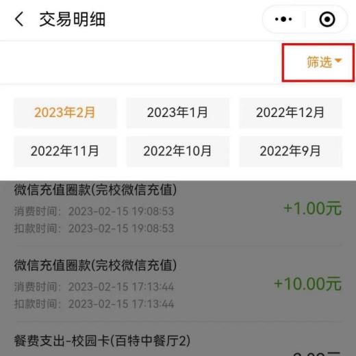 (2)显示“近期消费”,如想按月查询,点击右上角“筛选”, 可按月查询