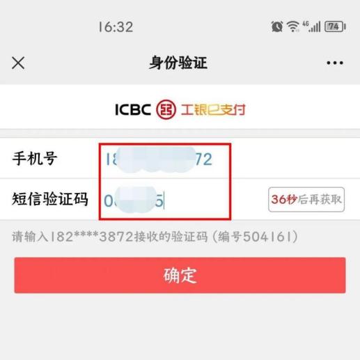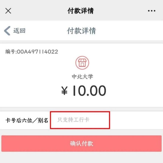 (5)输入工行卡号后六位