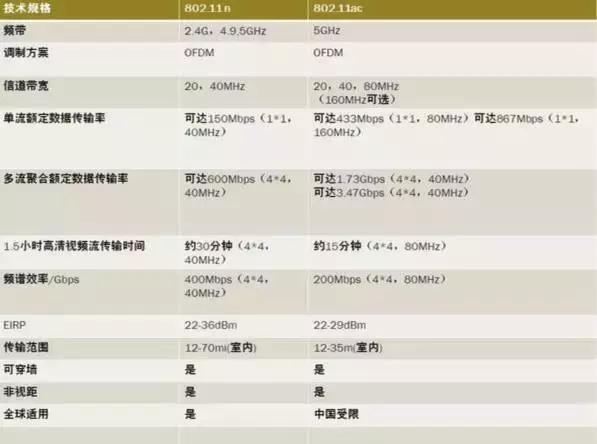 现在WIFI网络主要频率分为2.4GHz和5GHz,其中速率分为A B G N AC;